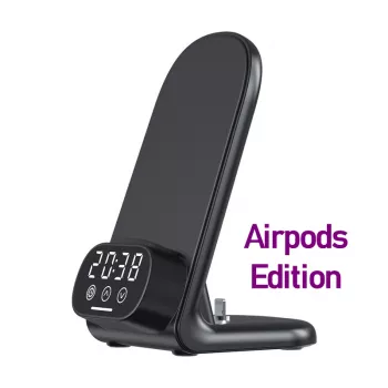 15W 3-in-1 Wireless Charger Stand with Clock for iPhone, AirPods, and Samsung