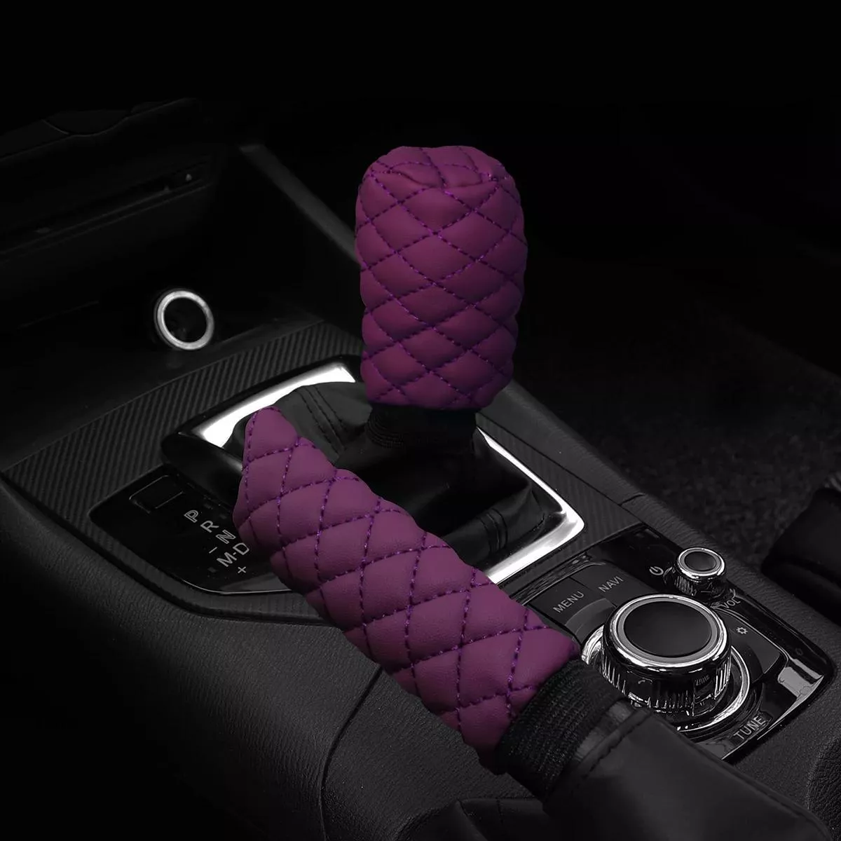 2-Piece PU Leather Embroidered Gear & Handbrake Cover Set for Manual Cars