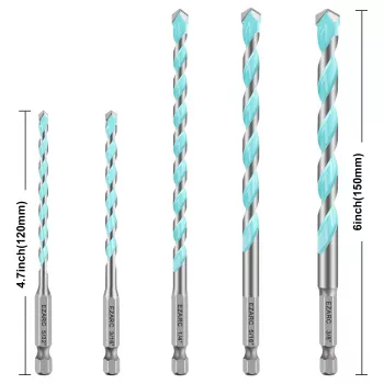 5PC Multi-Purpose Carbide Drill Bit Set with Hex Shank for Metal, Masonry, Wood, Brick, and Plastic