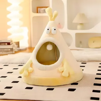 Cozy Cartoon Cat Bed - Washable Deep Sleep Tent for Small and Medium Pets