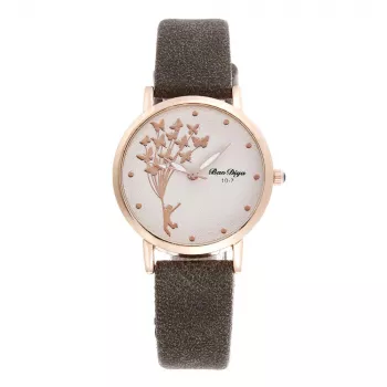 Fashion Butterfly Women's Quartz Watch with Brown Leather Strap