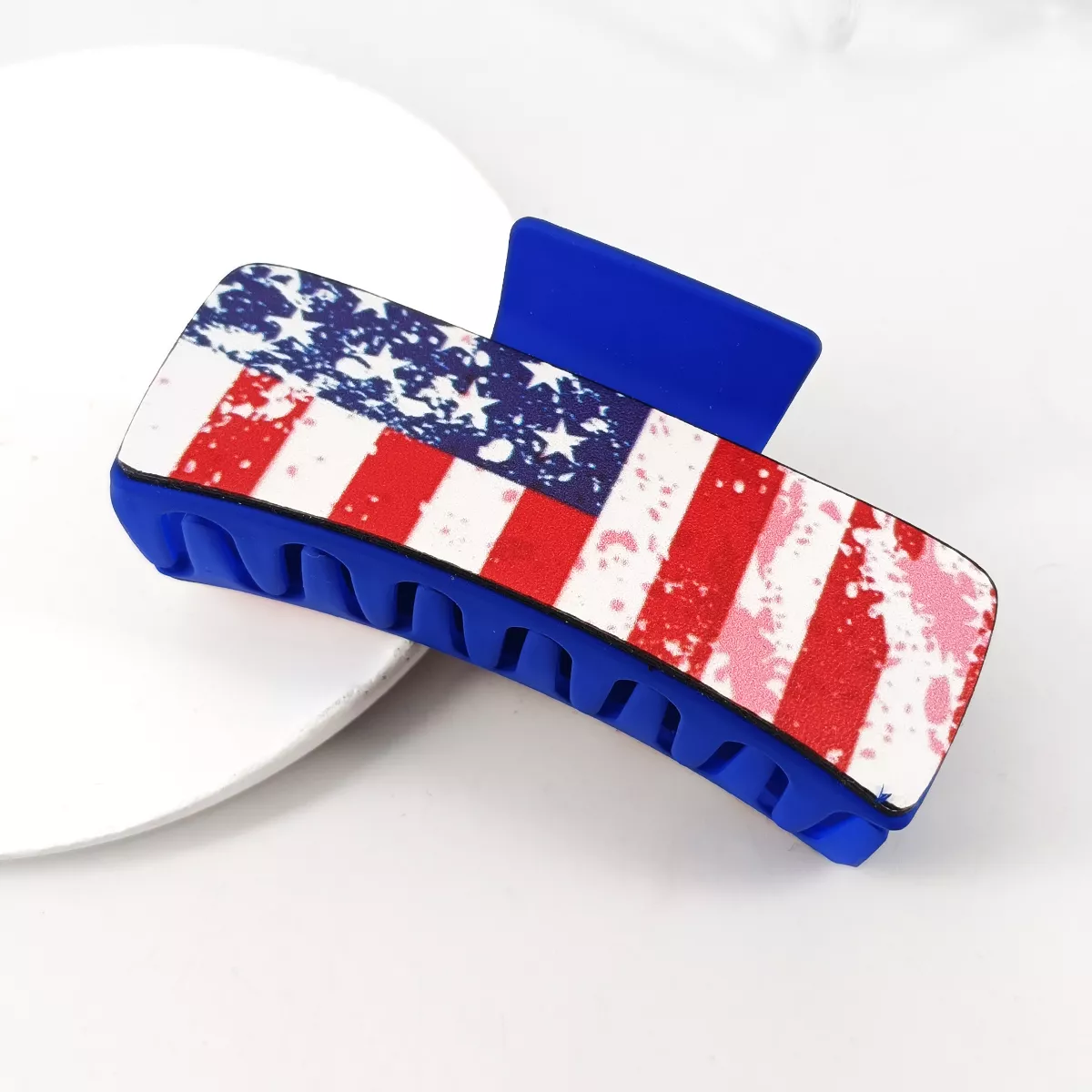 Patriotic PU Leather Hair Claw Clip – 4.1” Square American Flag Accessory