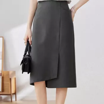 Straight Grey Midi Skirt with Irregular Slit and Pockets – Summer Pencil Fit
