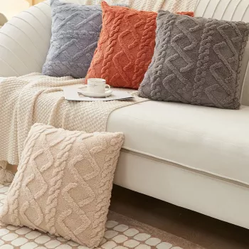 Supersoft Pink Velvet Corduroy Pillow Cover – 3D Geometric 18x18 Inch Cushion