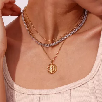 Waterproof Minimalist Moon & Sun Crystal Pendant Necklace